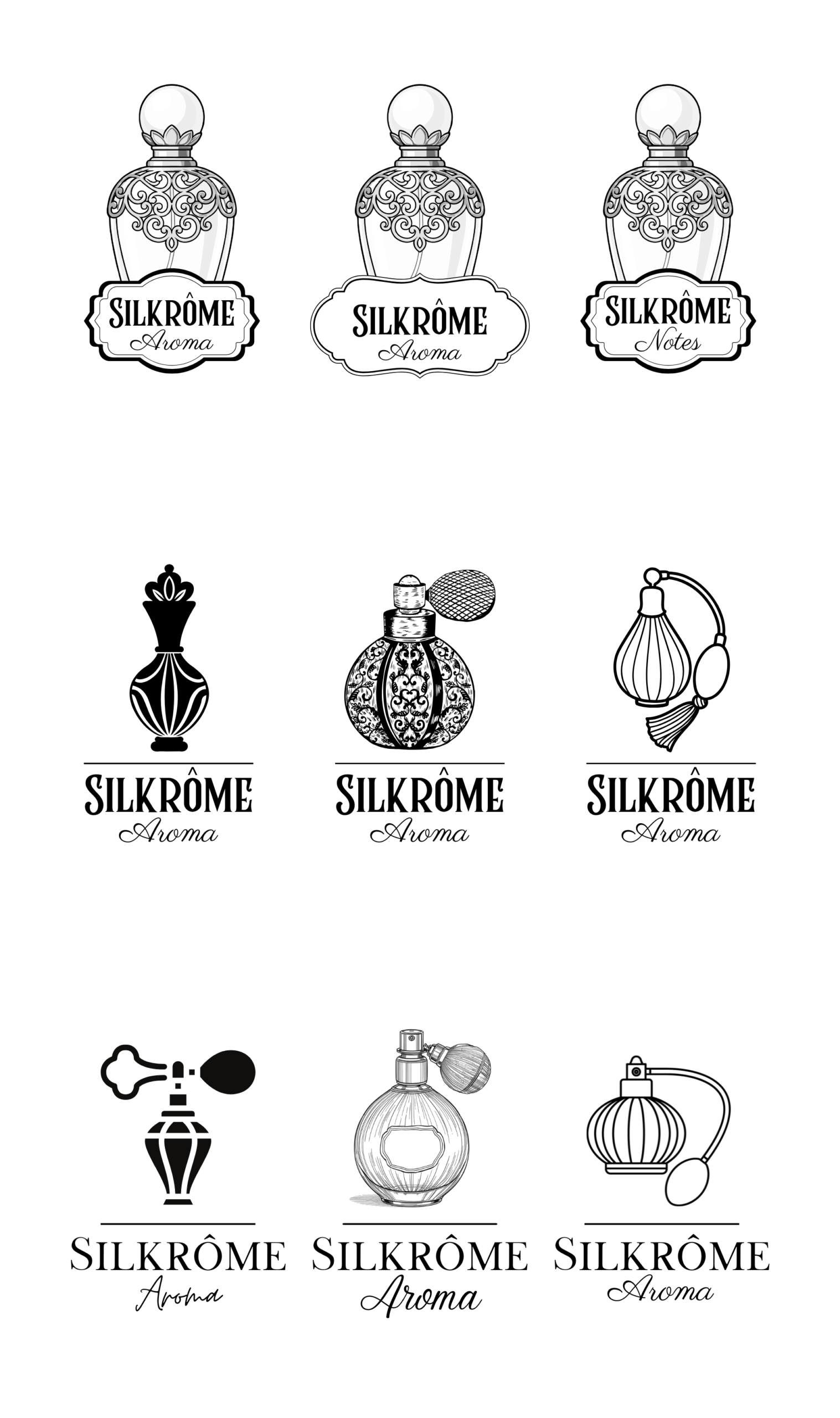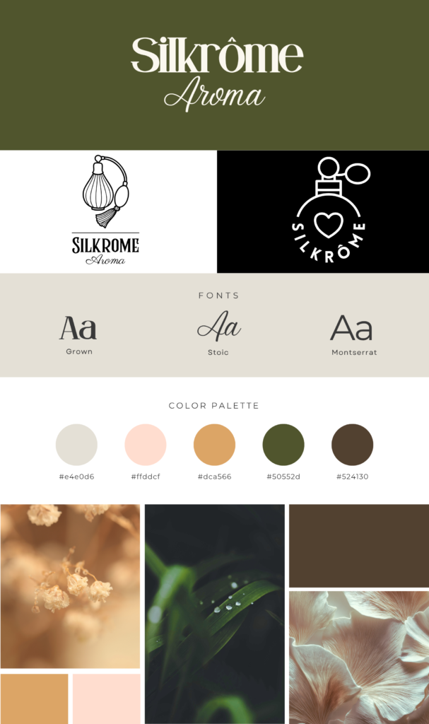 Brand Design – Perfume Company By: space.suchar@gmail.com | April 11, 2026 | Categories: brand design, design Simple brand design for a perfume company. Unsure about the name for now so the design included several ideas for the main name, logo and aesthetic of the brand.