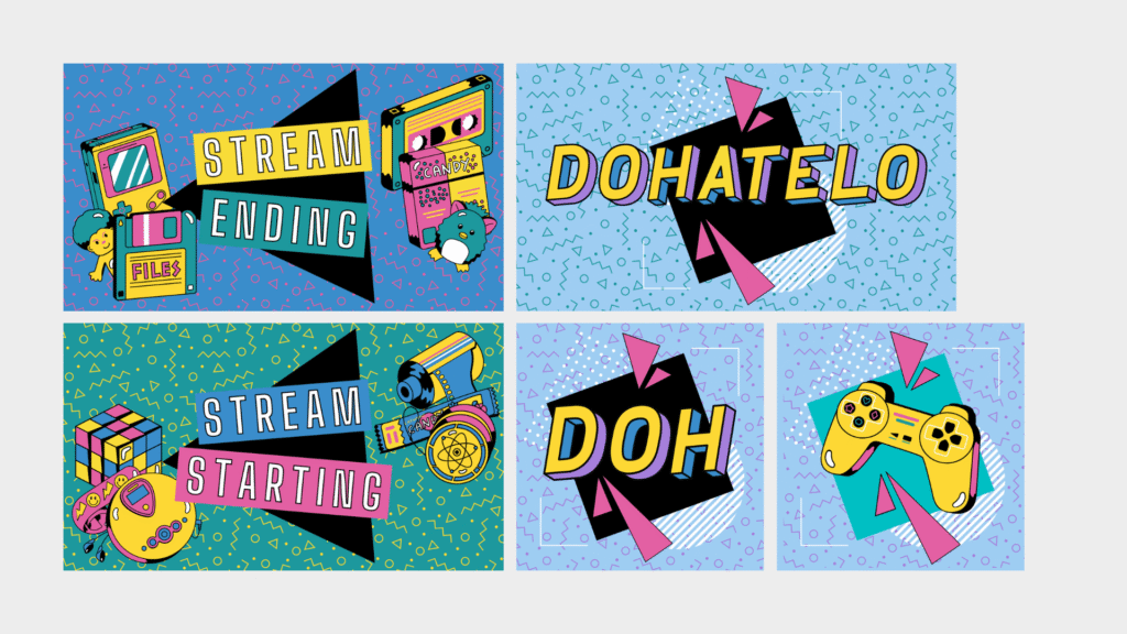 A redesign of the Twitch stream assets for Dohatelo. This is a social media brand design consisting of icons, banners and scenes for OBS and Youtube.